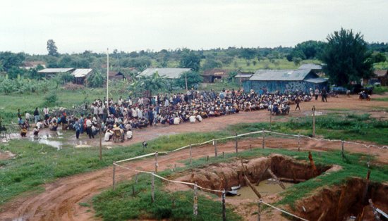 Chok Chey was een plaatsje waar verschillende Cambodjaanse leger troepen hun wapens hadden ingeruild voor eten en bescherming. De mensen daar kregen 1 keer in de week een voedselpakket die ze konden ophalen bij de uitgaven post. Wij moesten toezicht houden dat het netjes en zonder kleerscheuren verliep.